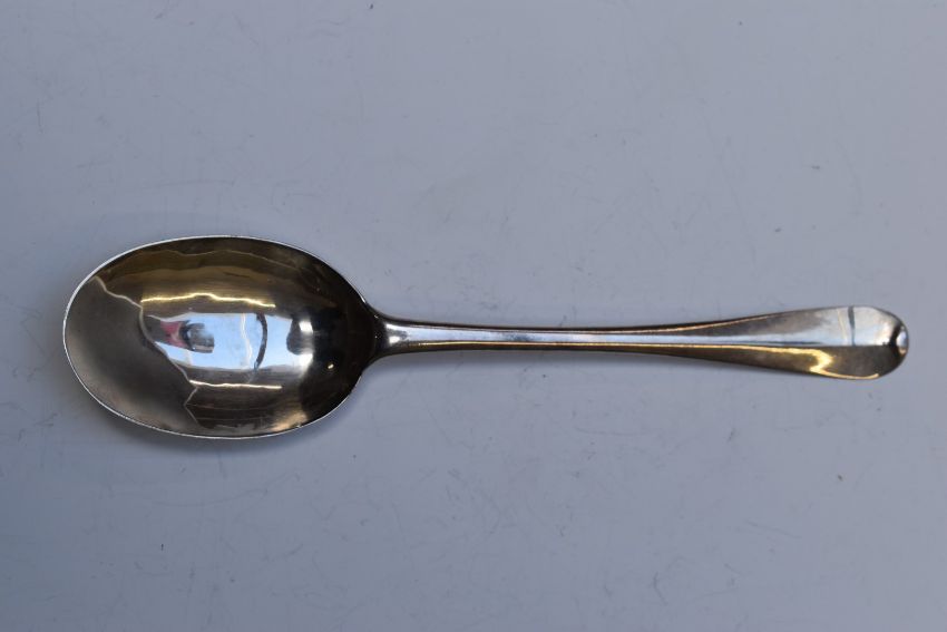George I Britannia standard bottom hallmarked silver Hanoverian rat tail pattern table spoon, London 1721, maker's mark SC likely for William Scarlett, length 18cm, weight 34g