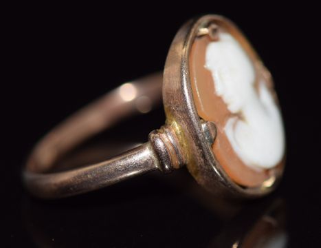A 9ct gold ring set with a cameo, 1.6g, size I