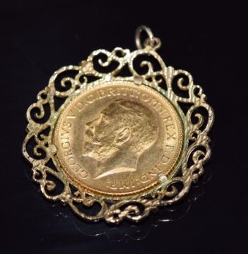 George V 1925 gold full sovereign in 9ct gold pendant mount, 11.2g