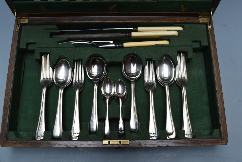 Two six place setting Mappin & Webb canteens of cutlery, width of larger canteen 46cm
