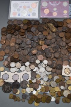 A collection of overseas coinage and medal coins, 19thC onwards, includes Eiffel Tower L'Ascension souvenir together with some UK coin sets, sundry copper, 'pirate cob' coin etc