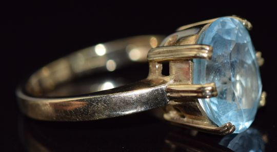 A 9ct gold ring set with an oval cut blue topaz, size N