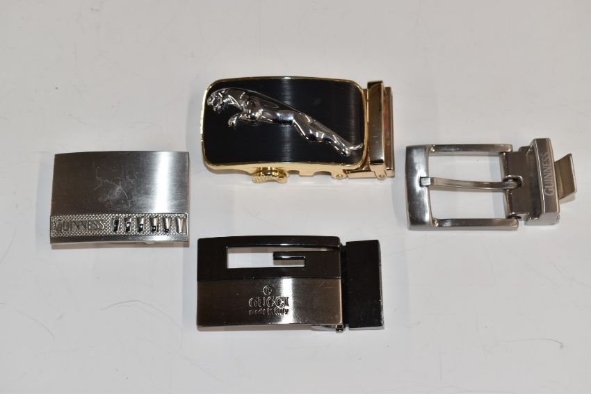 A collection of watches, Ronson lighter, vintage Ray-Ban sunglasses, belt buckles for Jaguar, Gucci, Guinness etc