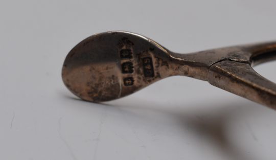 A pair of hallmarked silver novelty sugar nips in the form of wishbone, Birmingham 1918, maker Levi and Salaman, length 11.5cm
