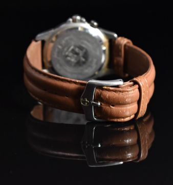 Wenger Swiss Army gentleman's wristwatch ref. 098.0469 with Aaarm, date aperture, luminous hands, Arabic numerals, cream dial, brushed stainless steel case and ETA quartz movement, on brown leather strap, case diameter 37mm.