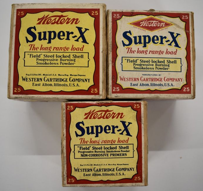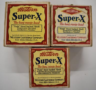 Seventy-five Western Cartrige Company of East Alton Illinois USA Super-X The Long Range Load 12, 16 and 20 bore shotgun cartridges, in three original boxes.  PLEASE NOTE THAT A VALID RELEVANT FIREARMS/SHOTGUN CERTIFICATE IS REQUIRED TO HANDLE/PURCHASE THIS ITEM.