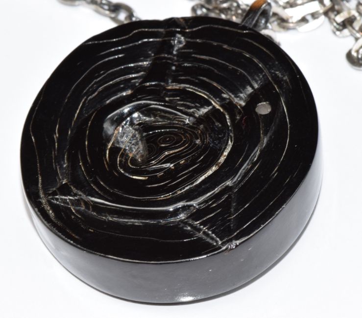 A carved black coral pendant depicting a shark and verso a flower set with a star sapphire, 3.5cm