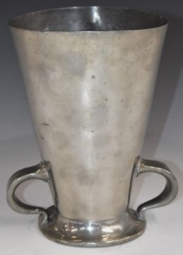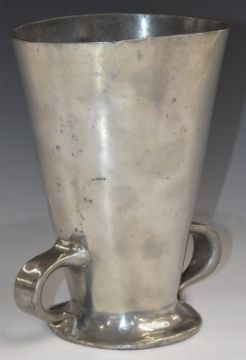 Tudric pewter twin handled  Arts and Crafts vase, probably designed by Oliver Baker for Liberty, impressed Tudric and 045 to base, H21cm
