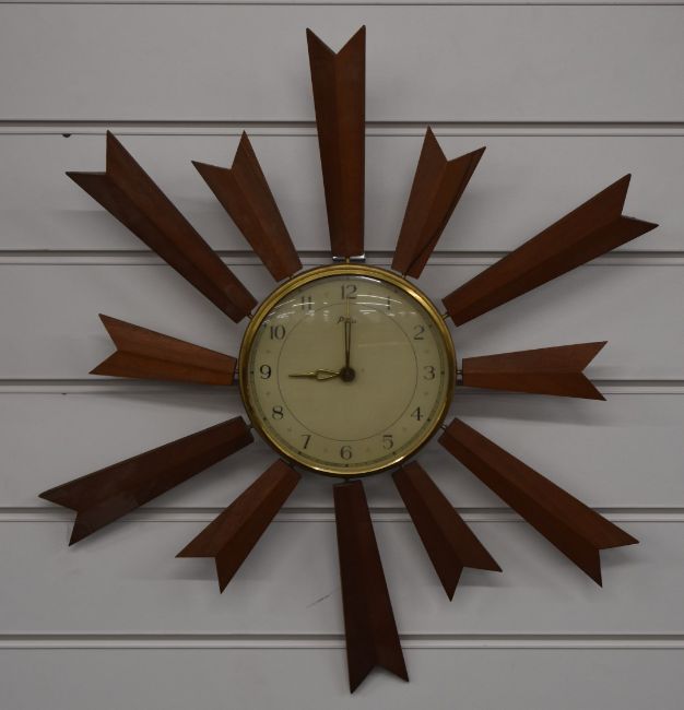 Paico Sunburst wall clock with Arabic ivory coloured dial, maximum diameter 42cm
