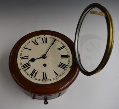 Mahogany wall clock with black Roman numerals and cream dial, diameter 27cm