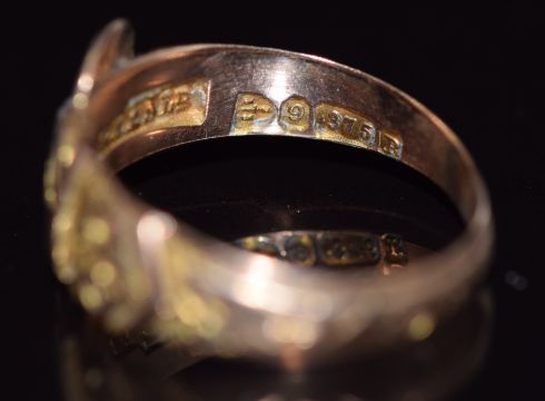 Victorian 9ct rose gold buckle ring, Chester 1900, 2.6g, size M