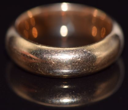 A yellow metal wedding band/ ring, 8.7g, size J