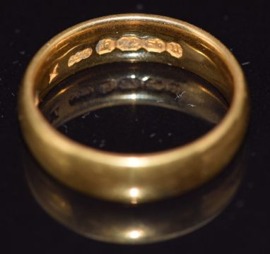 Victorian 22ct gold wedding band/ ring, Birmingham 1894, 7.1g, size L/M