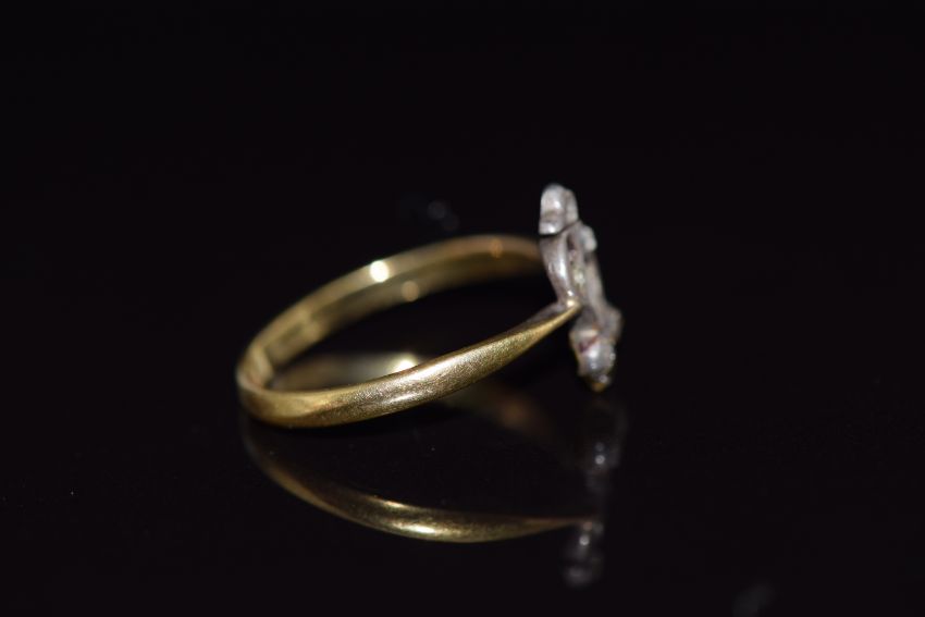An 18ct gold ring set with rose cut diamonds, 1.8g, size L