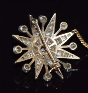 A c1900 star brooch set with diamonds in gold and white metal setting, 6.2g, 2.8cm