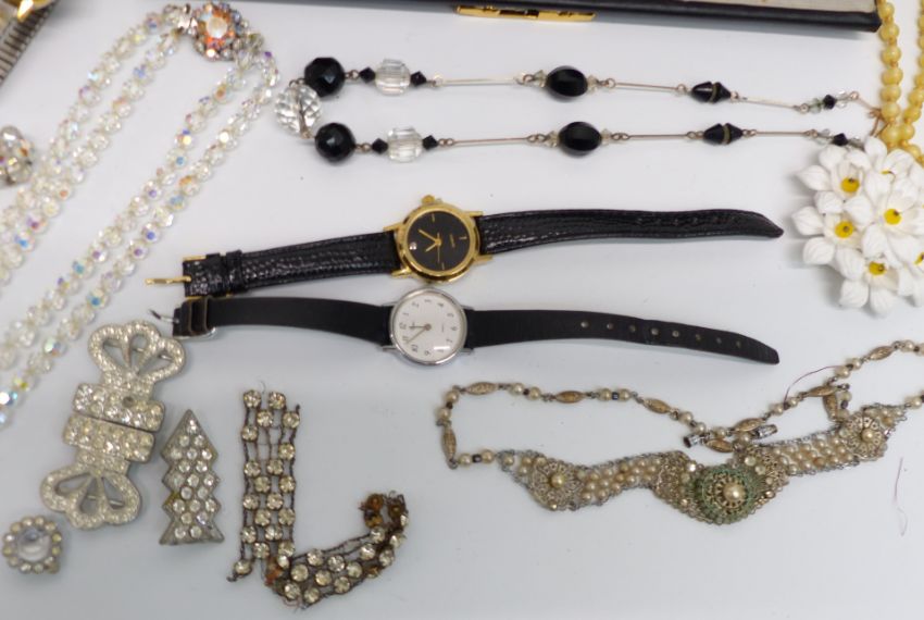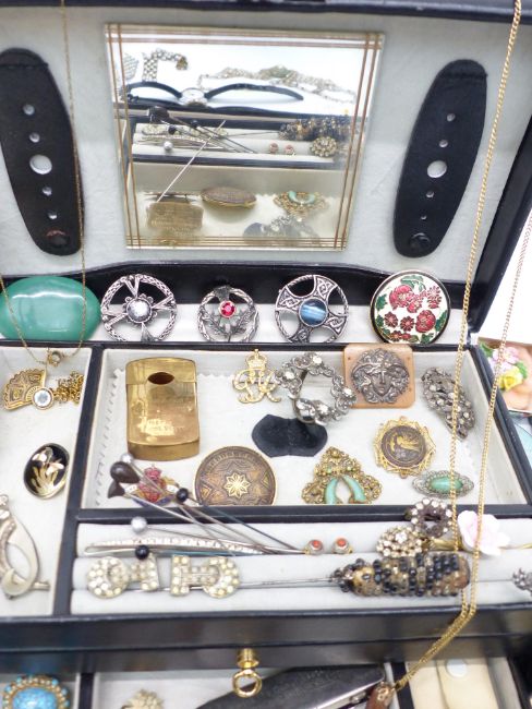 A collection of costume jewellery including Toledo brooches, antique necklaces, vintage brooches, etc
