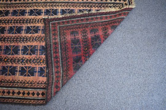 Turkoman rug with four rows of nine guls on a wine ground, 197 x 111cm
