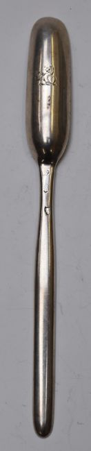 Irish hallmarked silver marrow scoop, Dublin marks rubbed but circa late Georgian/William IV, length 21cm, weight 61g