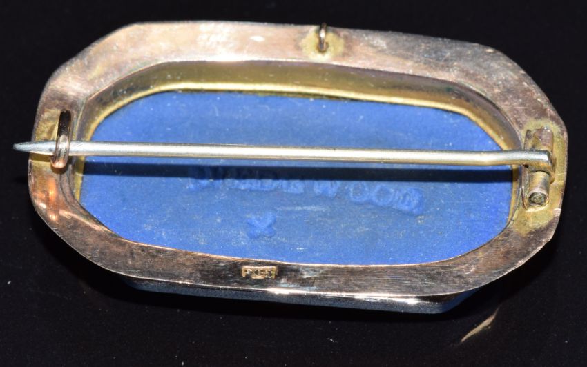 A 9ct gold brooch set with a Wedgwood plaque depicting the Three Graces, 3.8 x 2.2cm