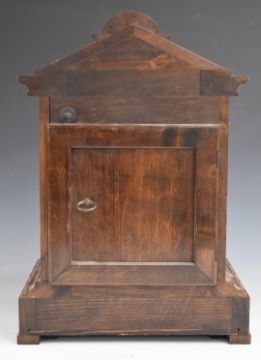 An early 20thC oak cased mantel clock with Junghans two train movement chiming on five bars, Roman silvered chapter ring on brass with floral spandrels and beetle and poker hands, H45cm