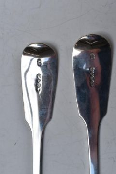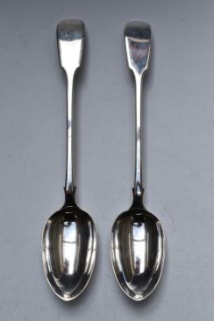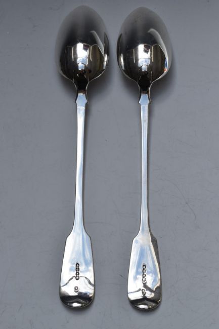 Pair of Victorian fiddle pattern hallmarked silver basting spoons, London 1839, maker William Eaton, length 31.5cm, weight 292g