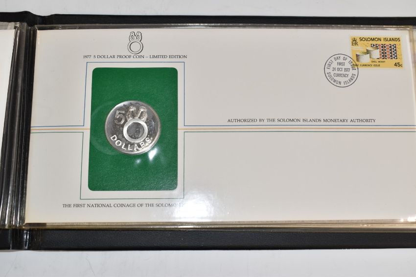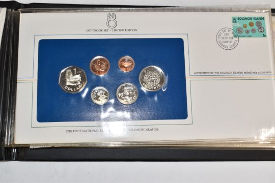 A first day issue coin set for the Solomon Islands including silver proof $5, together with Isle of Man uncirculated cased set and Queen Elizabeth II sixpence set 1953-1967