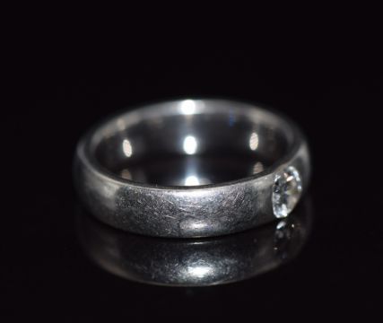 A platinum ring set with a round cut diamond of approximately 0.25ct, 9.3g, size I/J