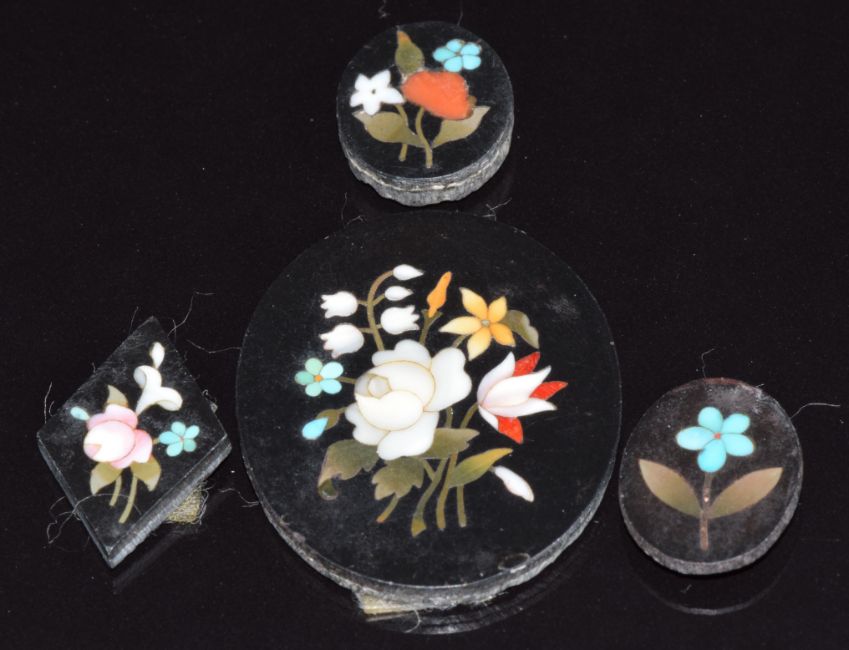 Four pietra dura plaques, largest 3.3 x 2.6cm