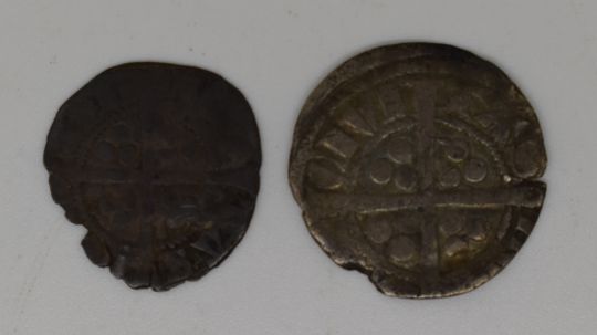 Edward III hammered halfpenny together with a penny