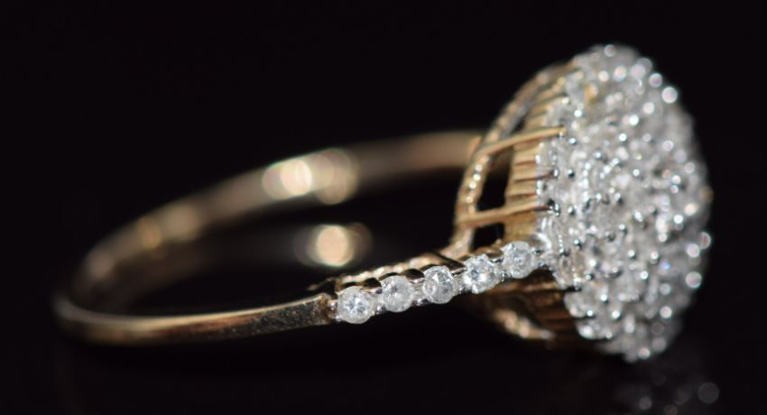 A 9ct gold ring set with diamonds in a cluster, 2.3g, size N
