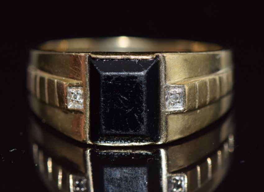 A 9ct gold ring set with diamonds and onyx, 3.4g, size U
