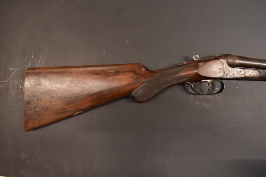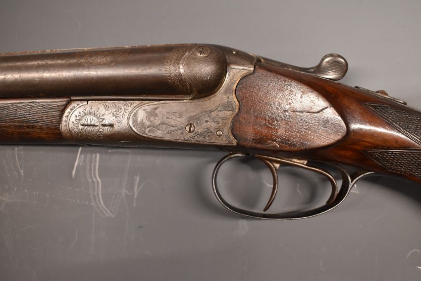 Johan Sigott of Ferlach Austria 16 bore side by side shotgun with engraved scenes of dogs flushing birds to the locks, engraved locks, trigger guard, underside, fences and thumb lever, chequered semi-pistol grip an forend, vacant cartouche to the underside of the stock, double trigger and named 29 inch barrels, overall length 115.5cm, length of pull 37.5cm, NVSN.  PLEASE NOTE THAT A VALID RELEVANT FIREARMS/SHOTGUN CERTIFICATE IS REQUIRED TO HANDLE/PURCHASE THIS ITEM.