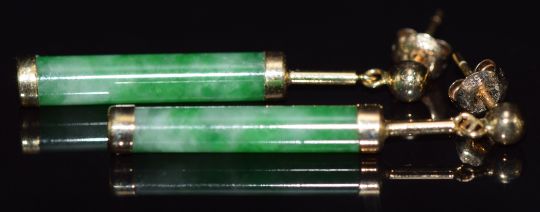 A pair of 9ct gold earrings set with jadeite, 3.4cm