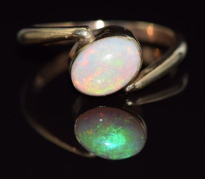 A 9ct gold ring set with an oval opal cabochon, 2.3g, size H