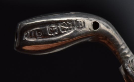 Scottish silver brooch depicting a thistle by WBs, Glasgow 1956, and another silver brooch in the form of a golf club and thistle, Birmingham 1925