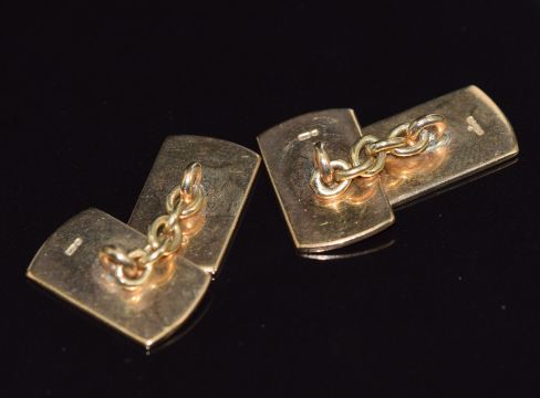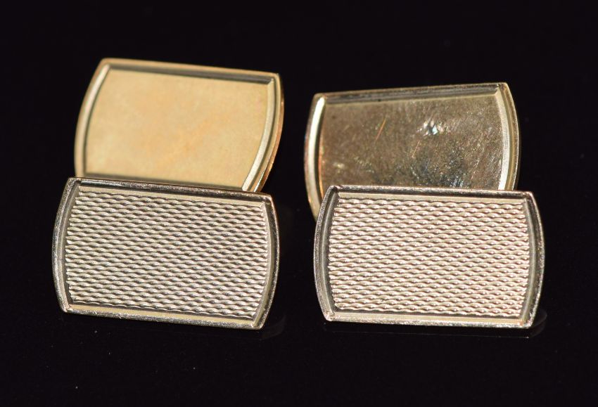 A pair of 9ct gold cufflinks with engine turned decoration, 8.4g