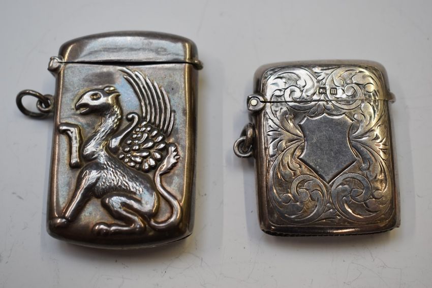 Two silver vesta cases, one Birmingham 1911, maker Williams (Birmingham) Ltd, the other marked 925, weight 39g