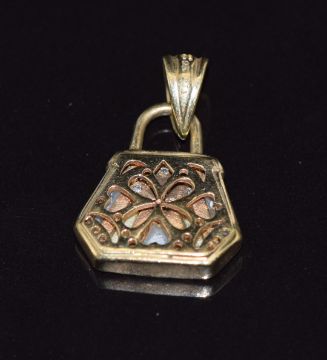 A 9ct gold pendant set with mother of pearl and diamonds, 2.5g, 2.3 x 1.5cm