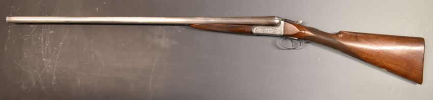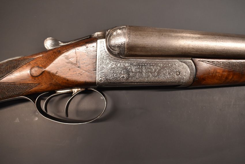 McGregor of Perth 12 bore side by side ejector shotgun with fine scrolling engraving to the named locks, trigger guard, underside, fences, top plate and thumb lever, chequered grip and forend, carved tear drop to the wrist, vacant gold cartouche to the underside of the stock, double trigger and 30 inch barrels engraved 'Mc Gregor Maker Perth' and choked ½ and ¾, overall length 119.5cm, length of pull 37.5cm, serial number 26703.  PLEASE NOTE THAT A VALID RELEVANT FIREARMS/SHOTGUN CERTIFICATE IS REQUIRED TO HANDLE/PURCHASE THIS ITEM.