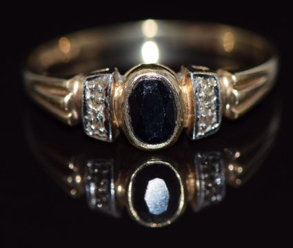 A 9ct gold ring set with an oval cut sapphire, 2g, size Q