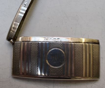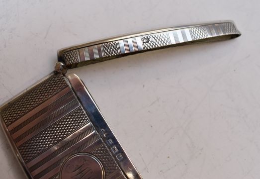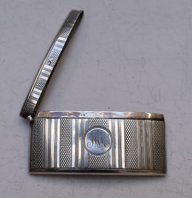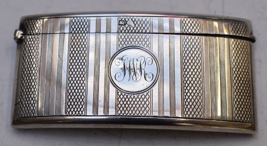 Edward VII hallmarked silver curved calling card case with engine turned decoration, Birmingham 1908, maker G Loveridge & Co, length 8cm, weight 43g