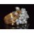 A 9ct gold multi band ring with a cluster of beaded pearls, 9.3g, size N