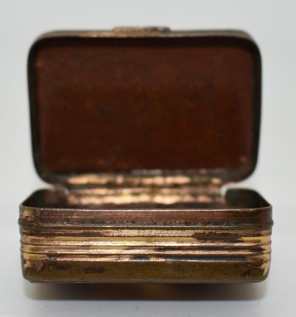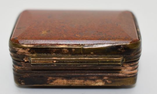 19thC gilt metal agate snuff box with hinged lid, 4x2.5cm