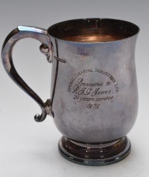 Elizabeth II hallmarked silver pint tankard, of baluster form, Sheffield 1975, maker James Dixon & Sons Ltd, height 13cm, weight 377g