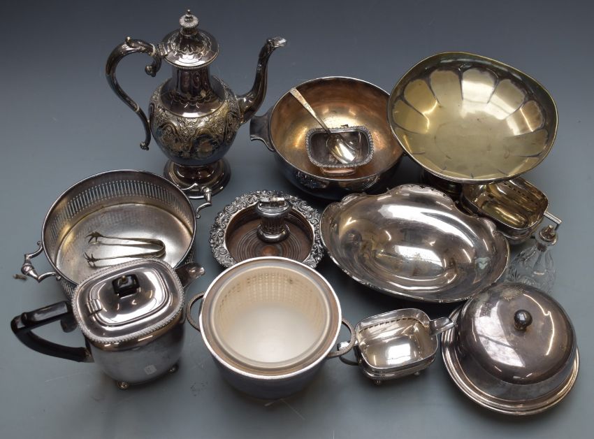Large collection of silver plated ware including trays, salver, teaware, King's pattern cutlery etc, length of large oval trays approximately 45cm