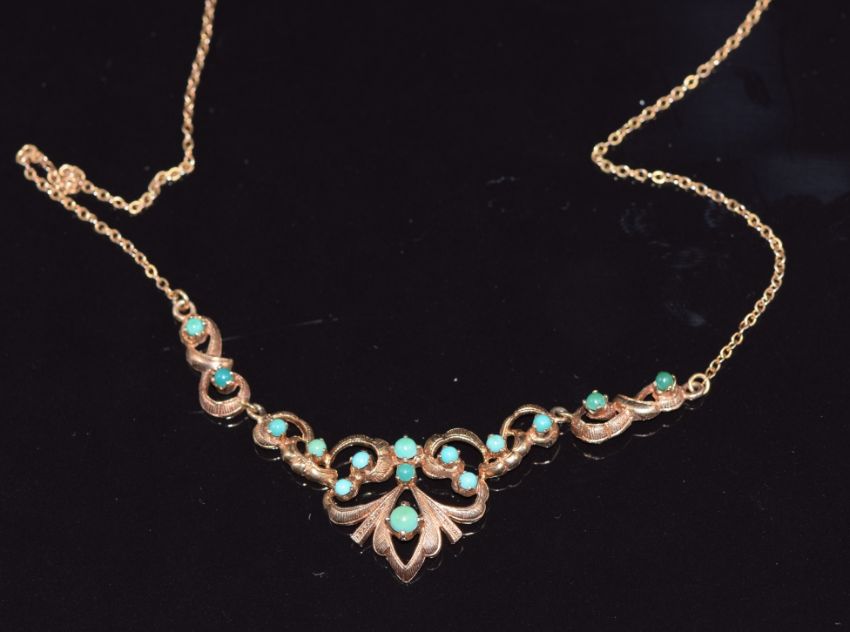 A 9ct gold necklace set with turquoise, 5.5g, length 40cm