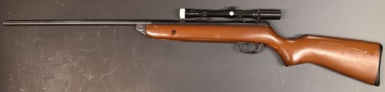BSA Meteor .22 air rifle with semi-pistol grip and Tasco 4x20 scope, serial number WE0425C.