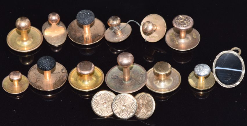 Nine 9ct gold studs one by Georg Jensen, three yellow metal buttons and two yellow metal studs, 10.5g