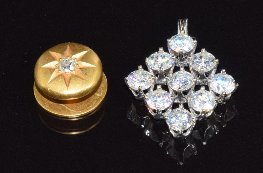Victorian stud set with an old cut diamond (2.1g) and a white metal pendant set with cubic zirconia
