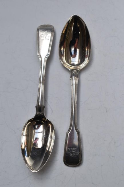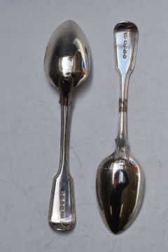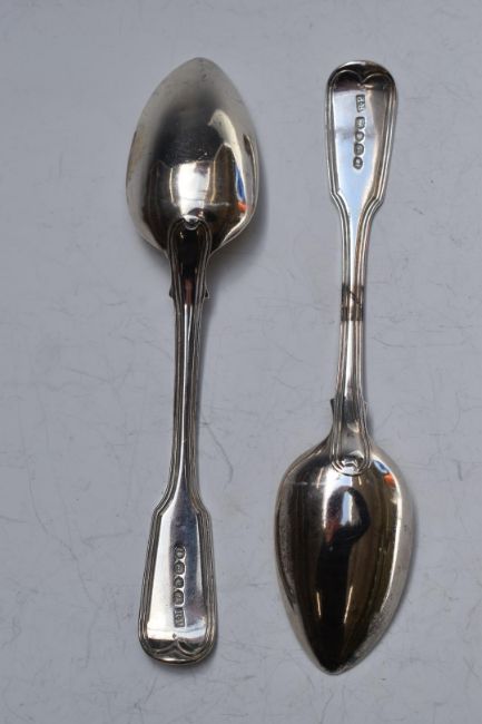 Georgian pair of hallmarked silver fiddle and thread pattern dessert spoons, London 1824, length 17.5cm, weight 106g